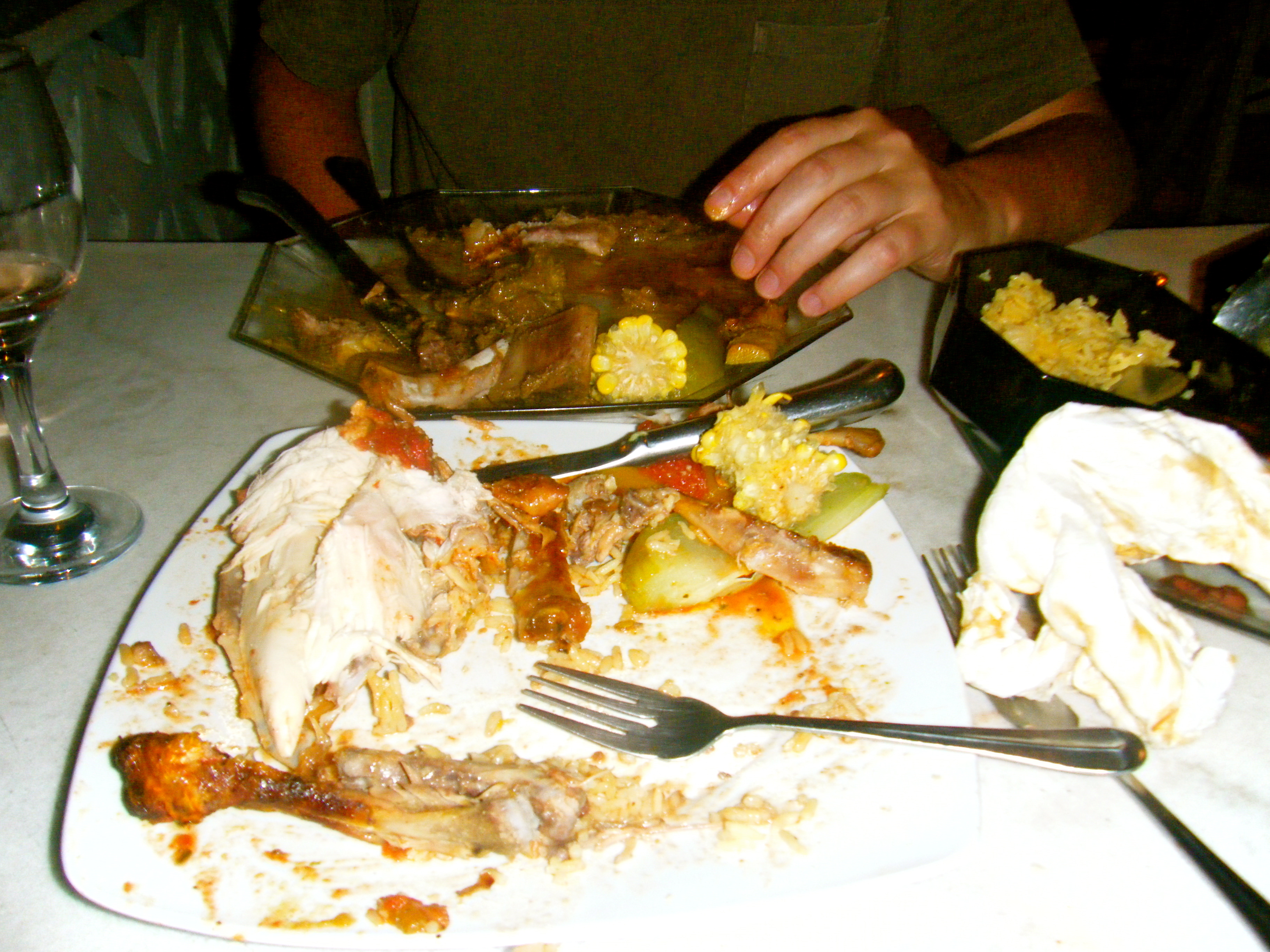 As you can see, I really liked that corn. So, we had the two plates of food — plus, there was a trio of sides to share: potatoes, rice and beans — and a two-glass bottle of wine for $40. I won’t be as harsh as Anthony Bourdain in my review, but I do suggest a trip to this restaurant if you get the chance.