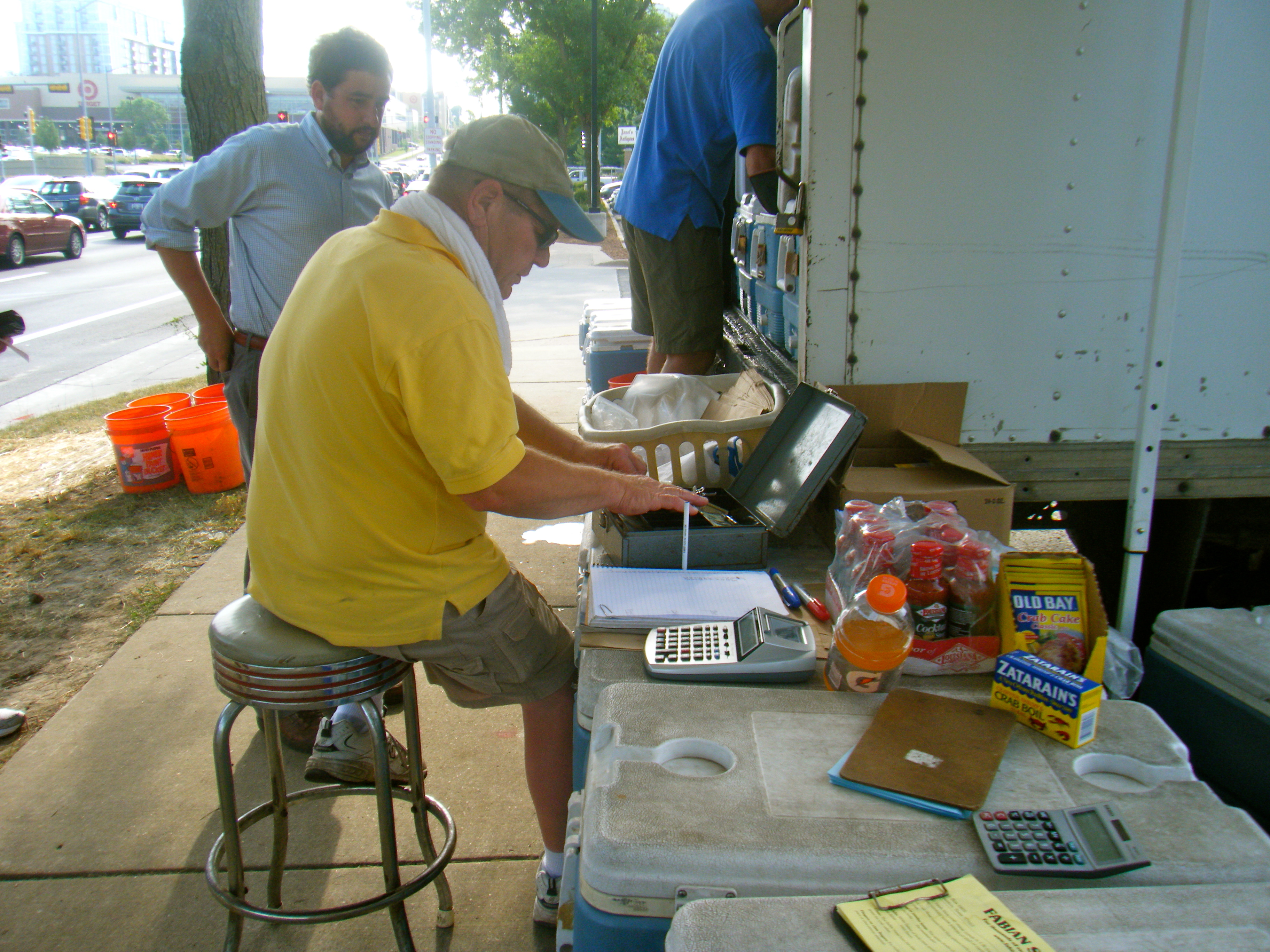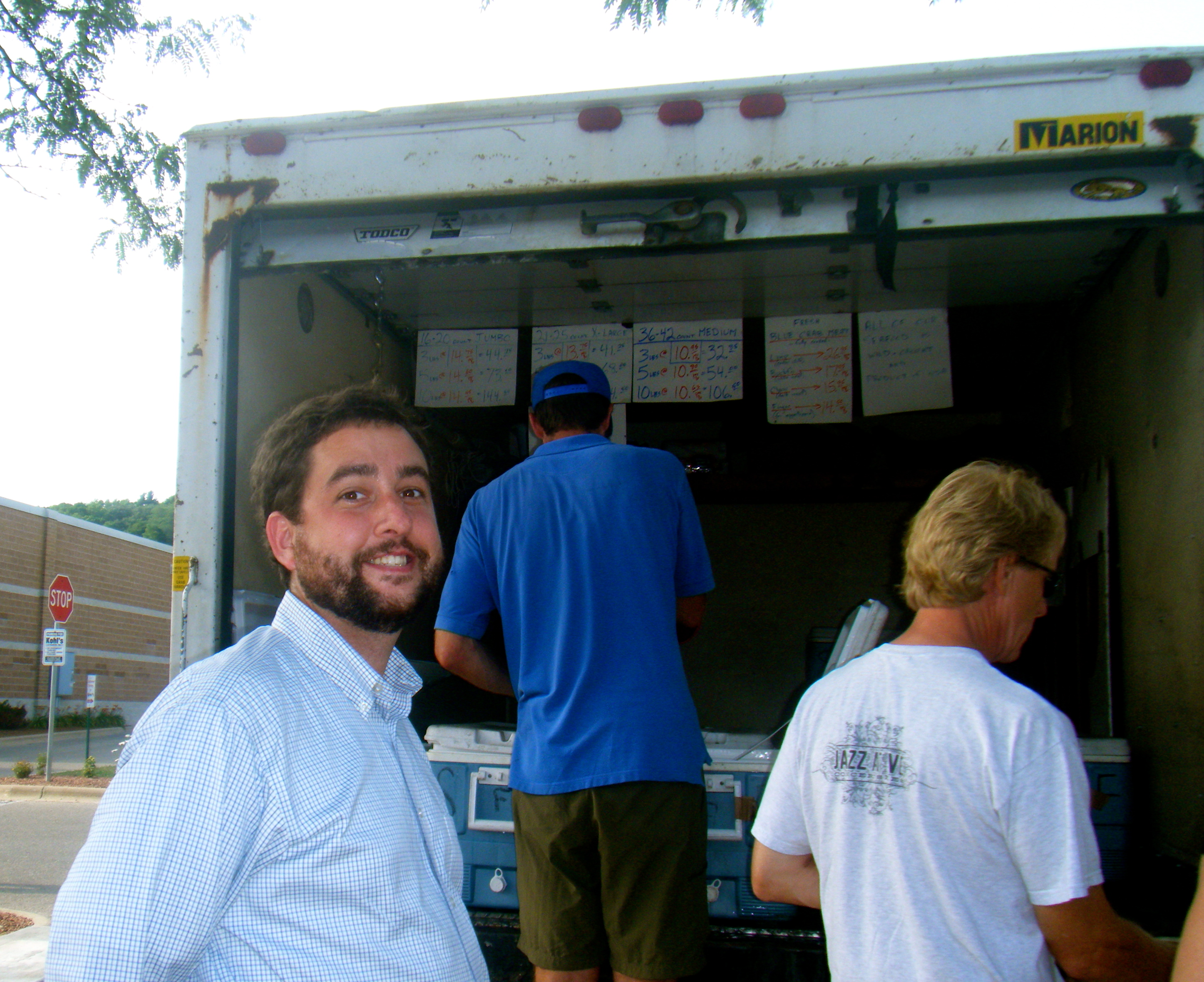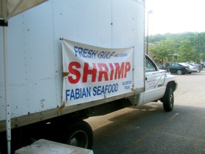 One of the things about Madison that Coasties/Coasters/Lots of People like to complain about is its distance from an ocean. Of course, this really isn’t Madison’s fault, but it is hard to argue the point. Of course, people surf and sail in Lake Michigan and scuba dive, row and paddle in Lakes Monona and Mendota, so watersports are well-represented in the midwest. Aaron catches lots of bluegill and perch in local waters, and has been known to land a trout from time to time. But crustaceans? Not so much. I suppose there are crayfish for those so inclined, but most people aren’t. Enter the formidable Shrimp Truck!