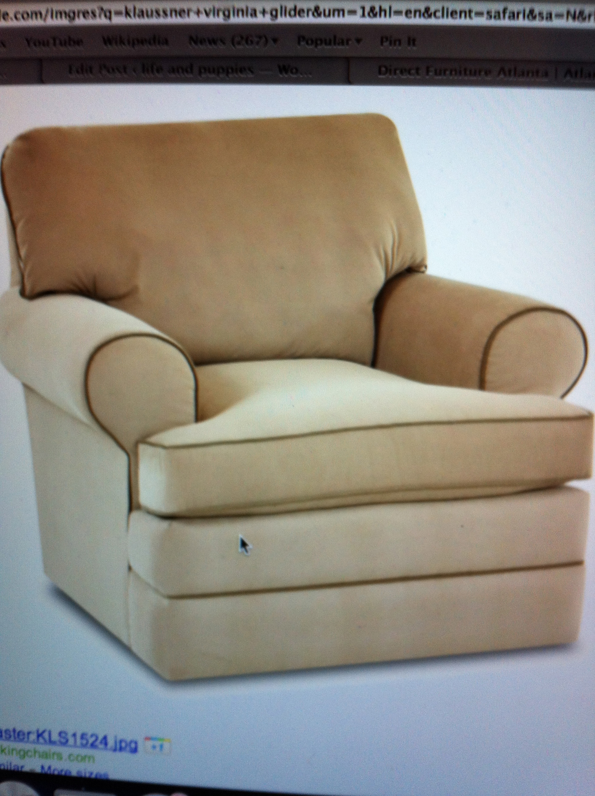We sat at a desk with a saleswoman who filled out a form for our request and then, as she was asking us to sign said form, said, “And that will be ready for pick-up in about 10-12 weeks.” Zoinks. What a total glider buzz kill. The glider’s gestational period was longer than that remaining on baby’s! While this wasn’t the end of the world, it was far from ideal and led us to scratch the deal and, again, start over. Only it wasn’t exactly starting over, because, as you well know, I had been down this glider research path previously.