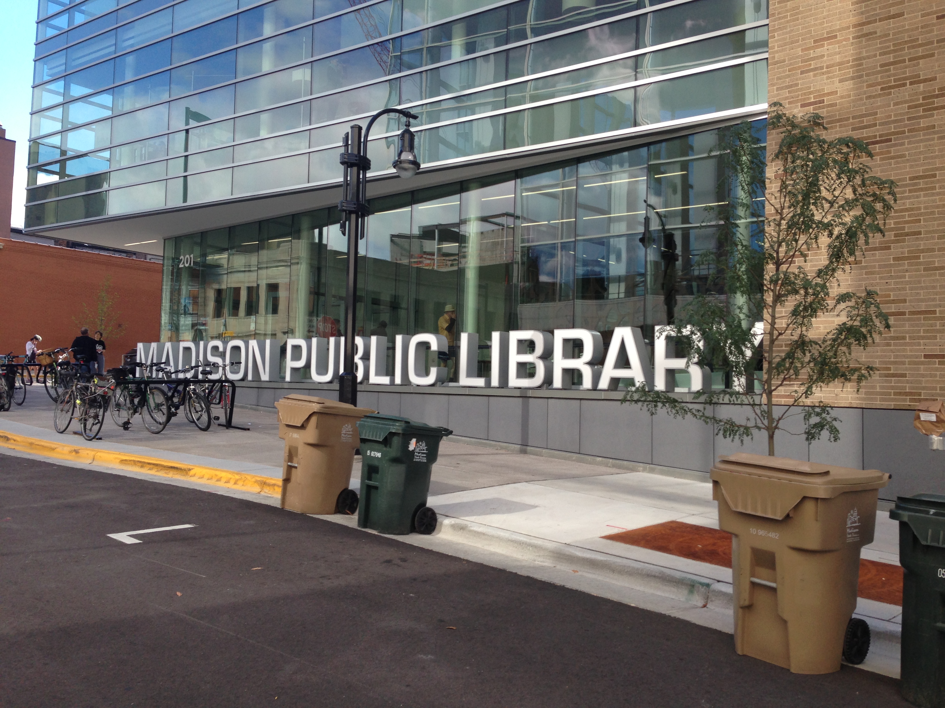“Welcome back,” I overheard the librarian say this morning at the long-awaited grand opening of the new library. She wasn’t talking to us, but to a group of men I’m pretty sure are homeless. I agree with the city’s library director that the central library shouldn’t be a substitute for a proper shelter for the city’s homeless, but I sure am happy that it’s back in action and warmly welcoming all of Madison with open arms.