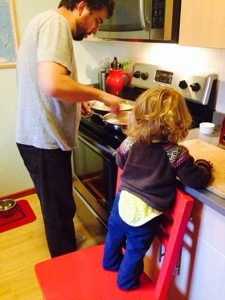 These are adorable. I particularly love the one of her on the chair watching Aaron at the stove. I have a very similar one of Tim wearing an apron and watching Mike. Lovely memories.