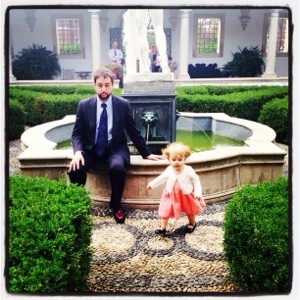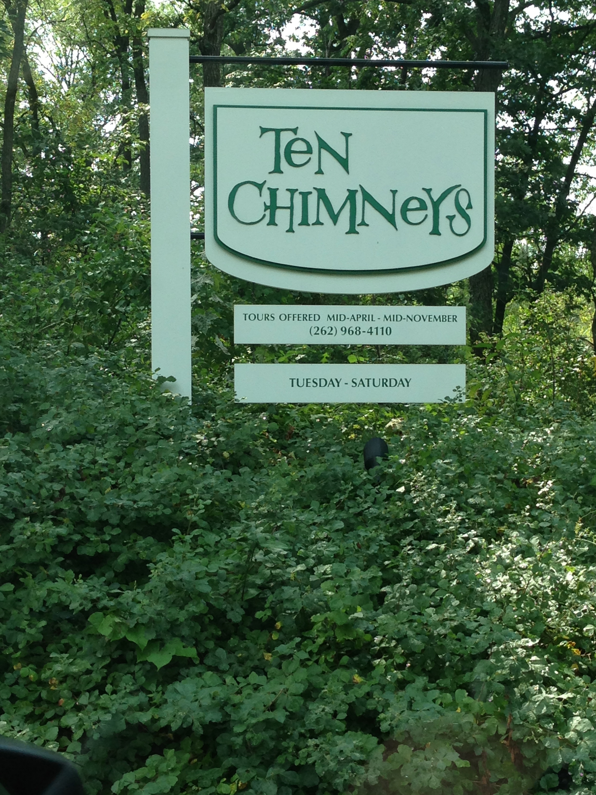 Awhile back, AO’s mom gave us two estate tour passes to Ten Chimneys. She also gave us a generous gift certificate to The Union House, a nearby watering hole. Well, because the gift certificate to the restaurant expired at the end of August, we decided in mid-August that we better getting going in making our plans to take on Genesee Depot. Due to the restaurant’s generous flexibility, yesterday was our day out. AO’s mom sweetly watched Bear so we could tour-it-up without the little one (kids under 12 aren’t allowed in the place anyway). We had the best day! Sure, the Lunts may not have had the best taste (no pictures are allowed to be taken inside the homes, otherwise I would have loved to show you the pretty cheesy murals all over the place) and Alfred may have been a bit of a miser (the gold leaf Alfred applied to the walls of the honeymoon cottage was actually gold Scotch tape). But holy cow was it fun to see a grand home in small-town Wisconsin that housed the Lunts and their estimable friends, like Noel Coward, Laurence Olivier (Larry) and Katharine Hepburn.