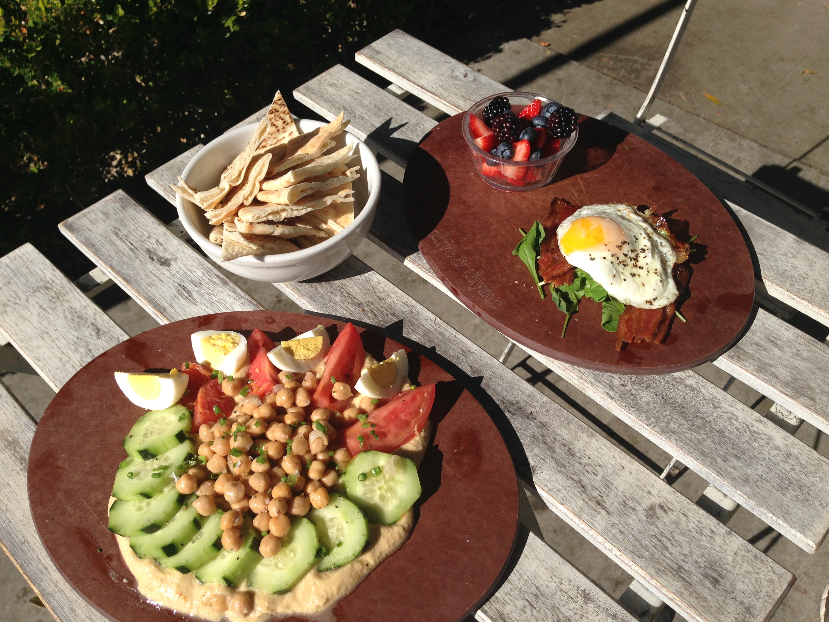 After the hike, we headed to Olive & Thyme for lunch and snagged a small table (in the shade per the GAOOG’s request) outside.
