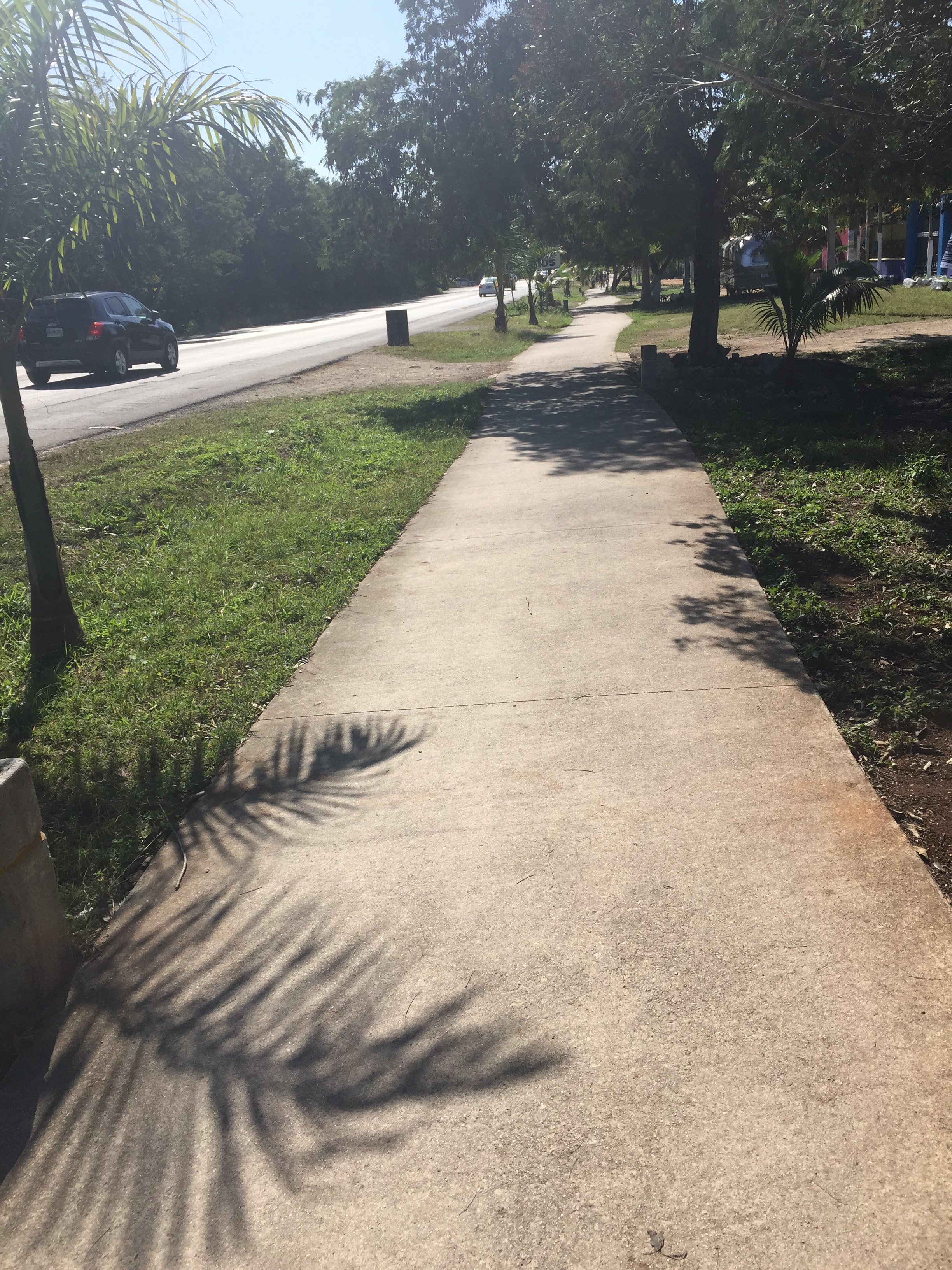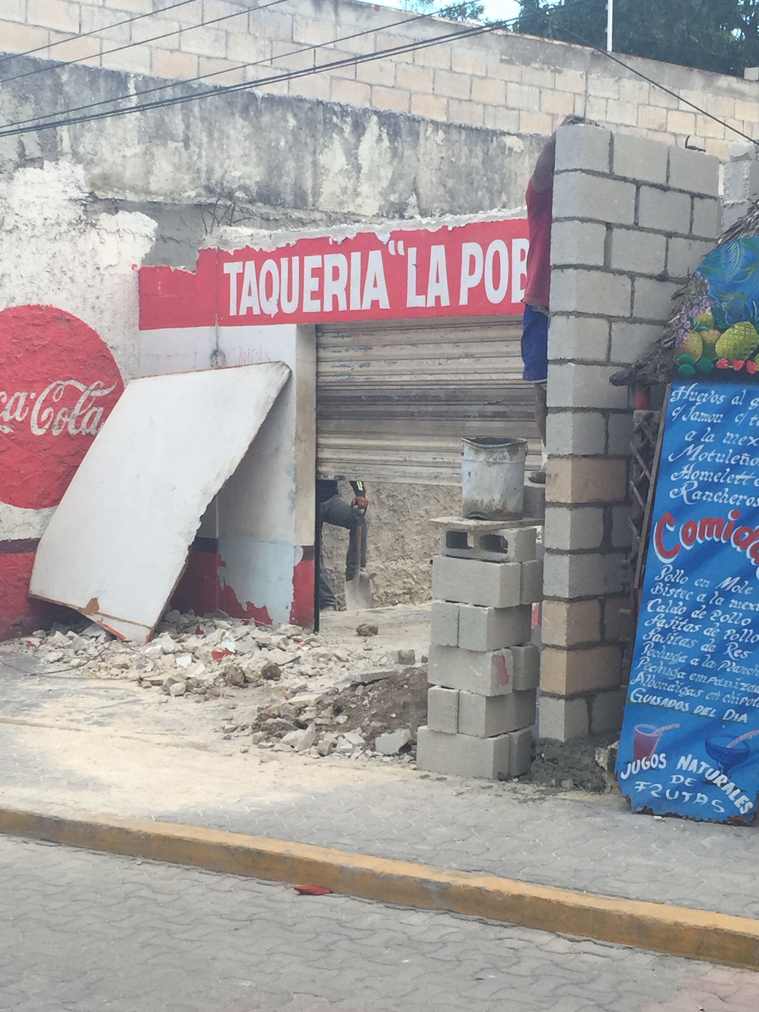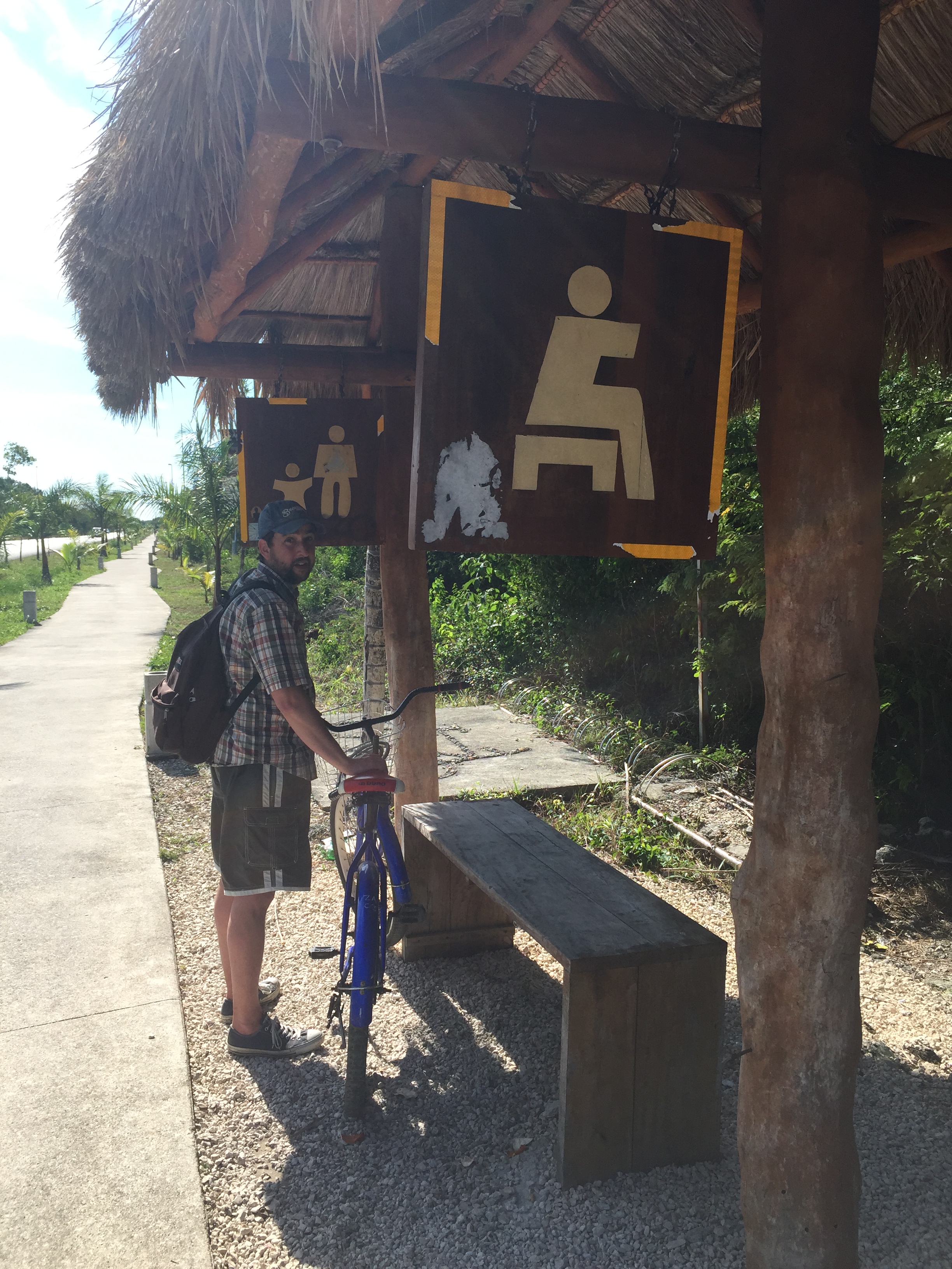 Oh! I almost forgot! This breakfast shown above was actually our second meal in Tulum. The first came the night before at Charlie’s, which was a couple of blocks from the hotel. I had a quesadilla and AO had something I can’t remember, but I know that he didn’t think it was very good. The more memorable part of the evening, though, was when the restaurant was bombarded by some sort of postmodern avant-garde small theater troupe that put on what I can describe only as bizarreness. I know I’m kind of a cultural-stick-in-the-mud anyway, but this was just odd. There was a group of America’s Next Top Model contestants sitting next to us (ok, not really, but there was something going on) wearing weird hats and some of them seemed to think the whole thing was so awesome that they took out their phones and videotaped it all. I can’t really explain it except to say that the troupe was maybe five people and one skit (I’m sure that’s an offensive term for what they were doing but I don’t know what else to call it) was about selling shoes. There were possibly some political overtones to the whole thing, but I couldn’t tell you because it was all in Spanish.