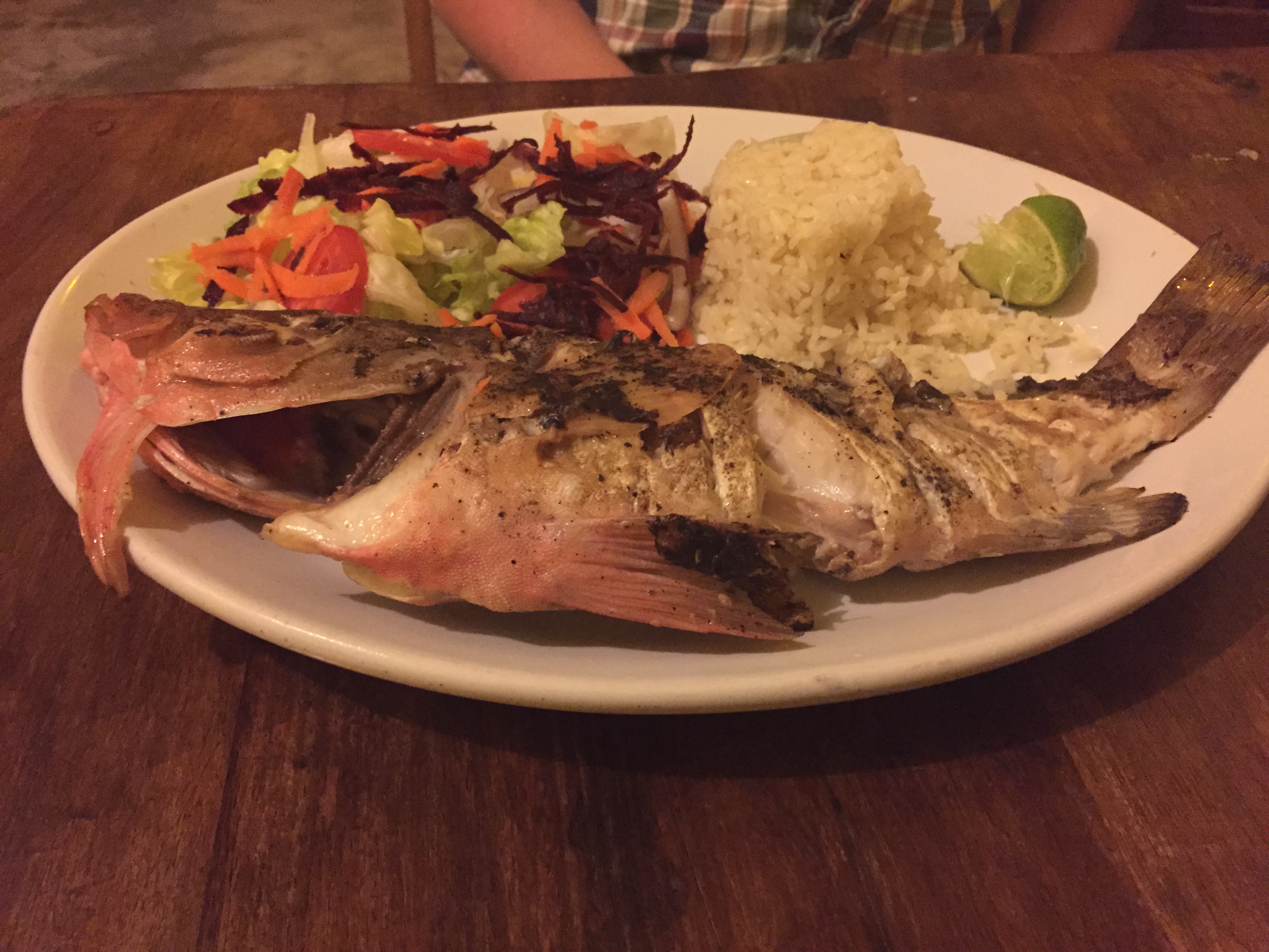 Mostly we ate in town, though we had a few meals/snacks on the beach. In town, we had yummy nachos, fish and shrimp fajitas (we ended up taking almost all of the fajitas back to the hotel) at El Capitan.