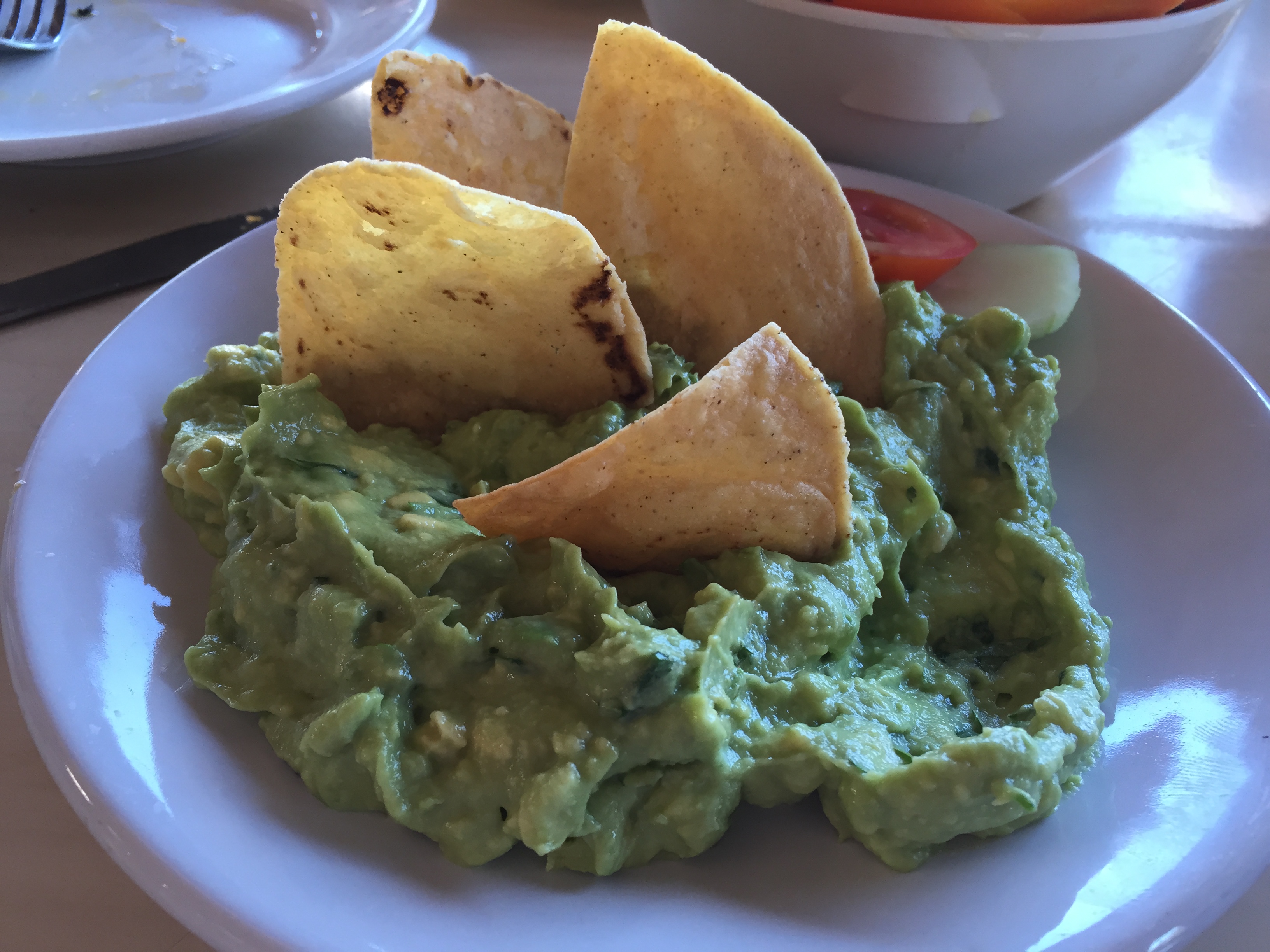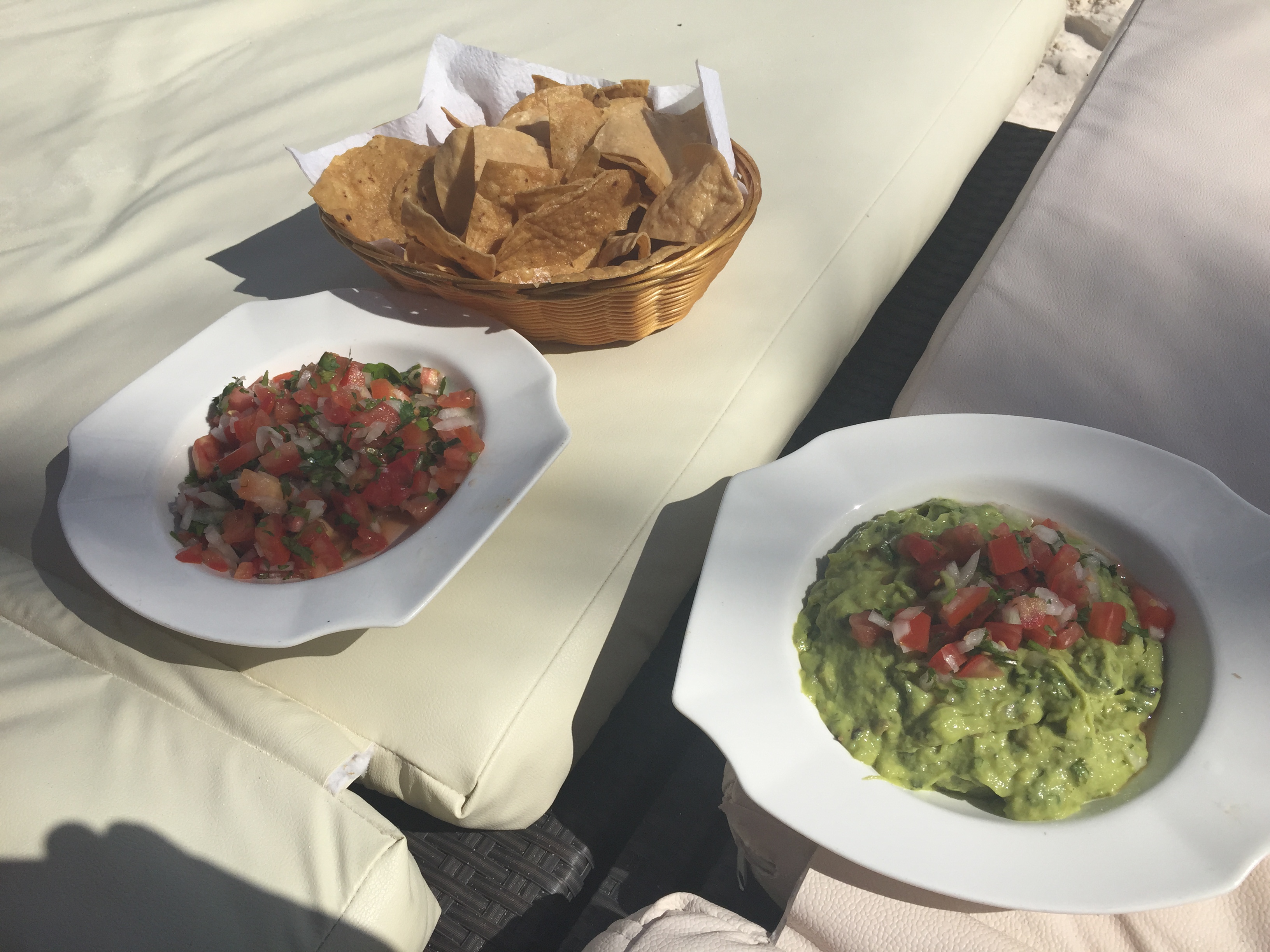 On the beach, we ate chips and guac at Playa Paraiso, which were quite tasty. Plus, is there anything in the world like sitting on a warm beach in January and having someone bring you drinks and guacamole? I can’t think of much.