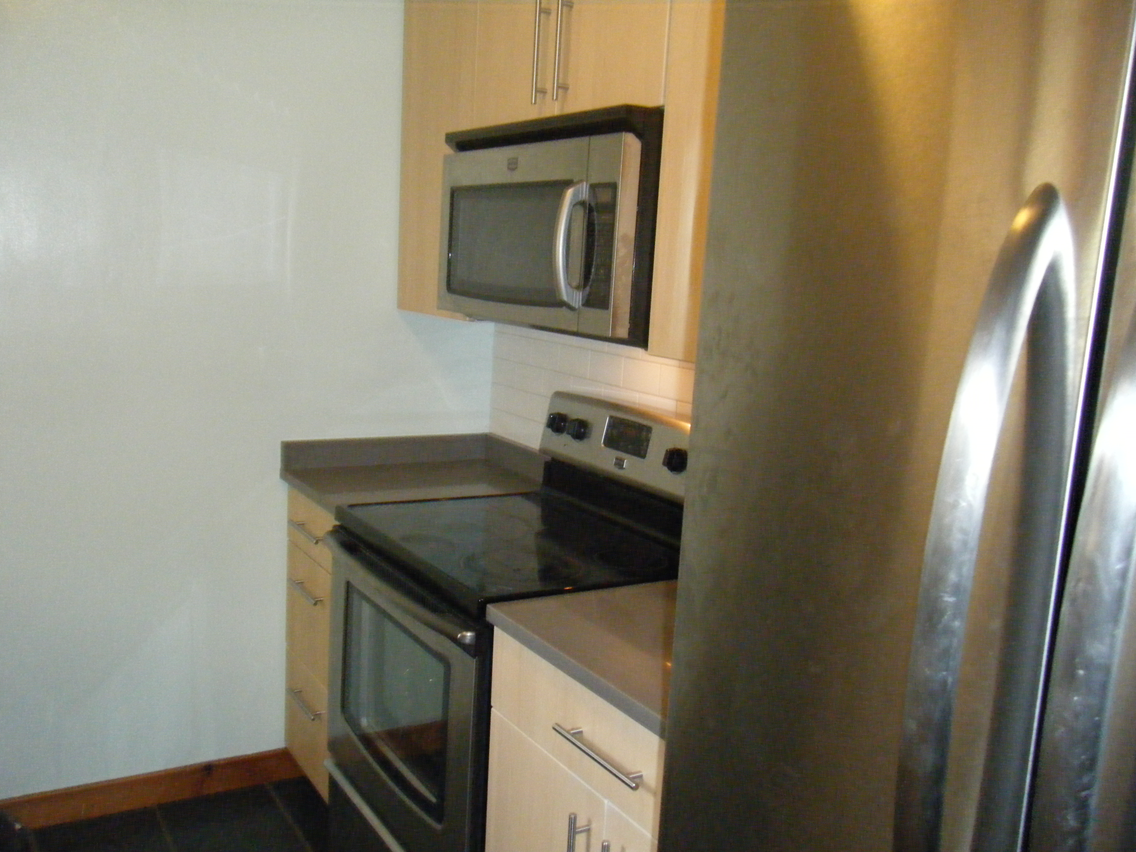 Well, not really. The tile guy is coming back tomorrow to grout, but I’m tired of waiting to put pictures up. Other than the grout and painting the ceiling, our Kitchen Remodel 2010 is complete. It came in at just over $16,000. Yikes! I think this is a pretty decent price, though. We wanted to spend conservatively, but we were also replacing everything so costs add up…Cabinets, hardware, sink, faucet, four major appliances, countertops, tile and, of course, labor. We “saved” a bit on two things: (1) Home Depot ended up picking up the costs of the quartz backsplash since they called me difficult in an email and botched the edge of the countertop (savings of almost $300) and (2) Home Depot called us one day to pay off the balance remaining on the job (10% — that’s right, they make you put 90% BEFORE anything even starts) and said that if we paid it off that day, they’d knock $270 some off the price. Something about monthly quotas or bills and us spending a lot of money there or something. I didn’t understand anything but that I would be allowed to pay less than I thought. So that I did.