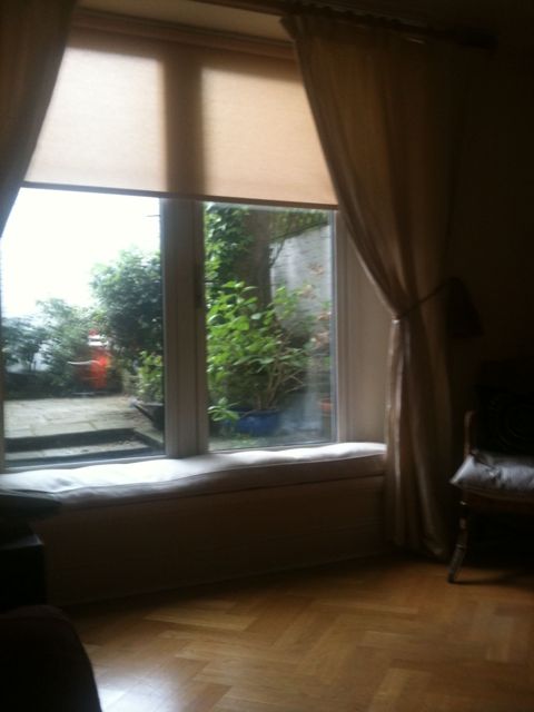 I took tons of pics today, but forgot the iPhone so the iPhoto of the day is a view of our flat’s private garden as seen from my spot on the couch in the living room.